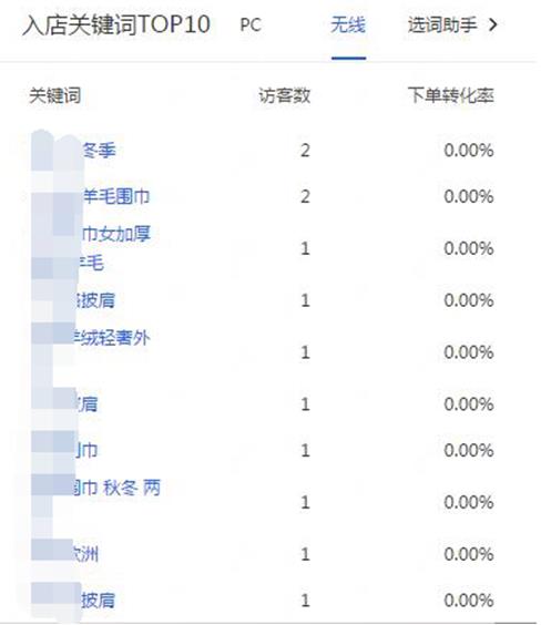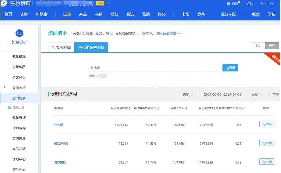我们在生意参谋的选词助手中可以看到店外关键词的数据,通过这些词我们可以了解标题中哪些词是有流量的,哪些是没有流量的,然后我们可以替换没有流量的词。